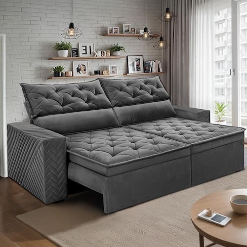 Sofá Retrátil E Reclinável 2,30m Essence Velusoft Cinza Cama Inbox