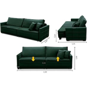 Sofá Retrátil e Reclinável 2,30m Karina Veludo Verde Madelina Decor