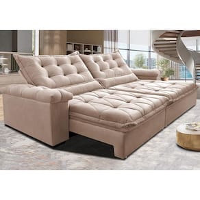 Sofá Retrátil E Reclinável 2,35m Cama Inbox Big Fresh Com Softgel D40 Velupluma Bege