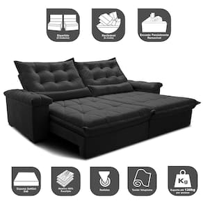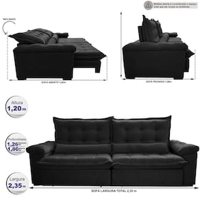 Sofá Retrátil e Reclinável 2,35m Cama inBox Big Fresh. com SoftGel D40 Velupluma - Preto