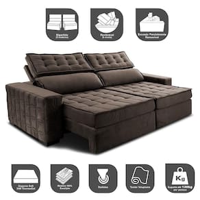 Sofá Retrátil E Reclinável 2,35m Cama Inbox Big Star Com Softgel D40 Velupluma Café