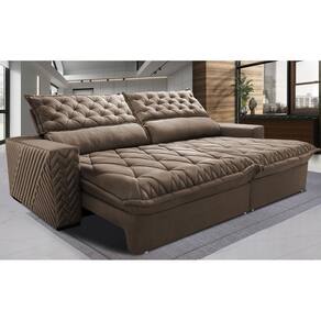 Sofá Retrátil e Reclinável 2,35m Molas Ensacadas Cama inBox Spazus. com Bordado 3D Velusoft - Palha
