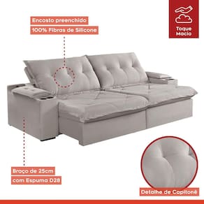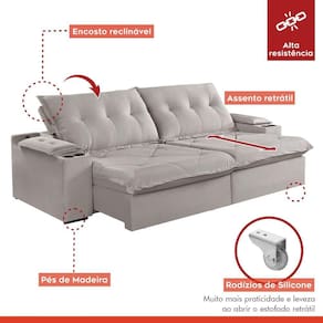 Sofás são fundamentais para que a sua sala fique mais receptiva, tanto para receber as visitas quanto para curtir aquele momento relax em frente à televisão. Por isso, o Sofá M163 é uma ótima pedida para entrar no seu time de móveis. Estruturado em madeira reflorestada, ele possui assento retrátil - o que facilita na hora de esticar as pernas para descansar - e revestimento em Veludo, agregando um valor estético incrível para a sua casa. Já a cor ajuda a compor a paleta de cores do espaço sem dificuldades, uma vez que é simples de inserir em qualquer ambiente. Acompanha Almofadas extras: Não Almofada do assento: Fixa Almofada do encosto: Fixa Altura do assento até o chão: 64 Altura do Encosto: 37 Altura dos Pés: 2.5 Ambiente Principal: Sala de Estar Complexidade da Montagem: Baixa: pode ser montado por uma pessoa sozinha Cor: Veludo/Cinza Cor do Produto: Veludo/Cinza Densidade do Assento: D-28 Densidade do Encosto: D-18 Enchimento do Assento: Espuma Enchimento do Encosto: Fibra Siliconada Estilo de Braço: Braços Quadrados Firmeza do Assento: Firme Informações Complementares: * Pillow do braço regulável* Entradas USB e USBC para carregar celular e outros dispositivos eletrônicos. Itens Inclusos: 1 Sofá e Manual de Instrução. Material dos Pés: Madeira Necessita Montagem: Sim Origem do Produto: Nacional Peso: 109.5 Pet Friendly: Não Possui Percintas Elásticas: Sim Possui Pés: 08 Possui Rodízio: Sim Profundidade Quando Estendido: 160 Recomendações de Uso, Manutenção e Limpeza: Não use produtos químicos, eles podem danificar o revestimento; Resistente à Chuva: Não Revestimento do Braço: Veludo Rodízio com Trava: Não Sistema de Montagem: Encaixe Suporta Até (kg): 120 Tecido Predominante: Veludo Tipo de Encosto: Regulável Tipo de Mola: Molas Bonnel Ean: 7909903408100