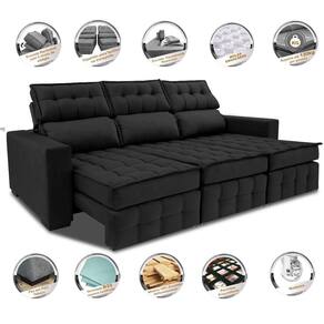 Sofá Retrátil e Reclinável 2,50m Molas Ensacadas e Costura Tripla Cama inBox Nobre. Suede - Preto
