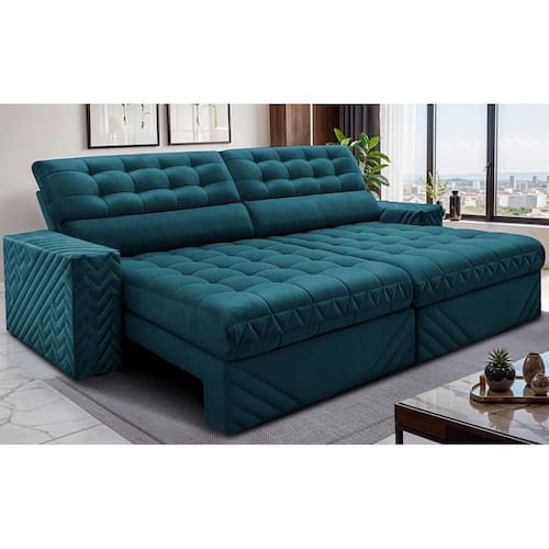 Sofá Retrátil e Reclinável 2,50m Molas Ensacadas Max Spring. Velusoft Cama inBox