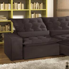 Altura: 110 cm Largura: 250 Profundidade Aberto: 180 cm Profundidade Fechado: 120 cm Estrutura: Madeira de reflorestamento ecologicamente correto, seca e imunizada Braço: Espuma D23 e Revestimento com Manta Acrílica Assento: Mola Espiral, Percinta Elástica, Retrátil com Pillow com Fibra Siliconada com 18 cm de altura e Revestimento com manta acrílica Encosto: Reclinável e Destacável, Almofada fixa preenchida com fibra 100 siliconada e manta Acrílica 04 pés fixos em MDF e 04 rodízios de Silicone Pés e Encosto -parte da almofada- DESMONTADOS Suporte de peso 150 kg por módulo Garantia 90 dias