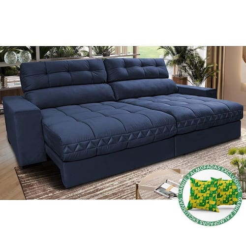 Sofá Retrátil E Reclinável 2,52m Molas Ensacadas Cama Inbox Brasil Velusoft Azul