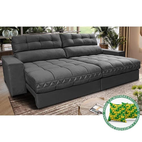 Sofá Retrátil E Reclinável 2,52m Molas Ensacadas Cama Inbox Brasil Velusoft Cinza