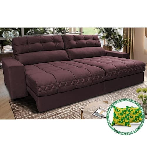 Sofá Retrátil E Reclinável 2,52m Molas Ensacadas Cama Inbox Brasil Velusoft Vinho