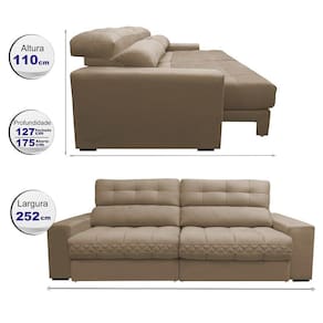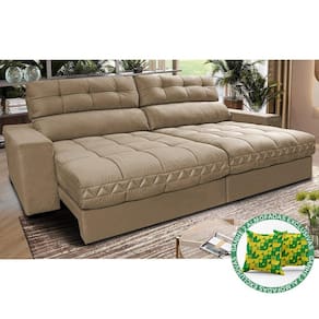 Sofá Retrátil e Reclinável 2,52m Molas Ensacadas Cama inBox Brasil. Velusoft - Bege