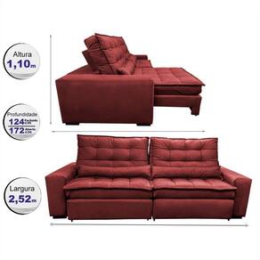 Sofá Retrátil e Reclinável 2,52m Molas Ensacadas Cama inBox Catar. Velusoft - Vermelho
