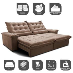 Sofá Retrátil e Reclinável 2,55m Cama inBox Big Fresh. com SoftGel D40 Velupluma - Palha
