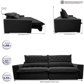 Embeleze e complemente sua sala com a ajuda do maravilhoso Sofá Retrátil e Reclinável Spazus. Com uma estrutura interna resistente, ele possui a estabilidade necessária para esse tipo de móvel, enquanto o enchimento em espuma D33, molas ensacadas de molejo duplo e percintas italianas, dão o suporte necessário para o conforto, sendo perfeito para acomodar você e as pessoas que ama naquela maratona de séries, ou até mesmo para descansarem aos finais de semana. Dê um up no visual da sua casa. Demais, né? Garanta já o seu!