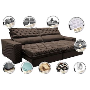 Sofá Retrátil e Reclinável 2,55m Molas Ensacadas Cama inBox Spazus. com Bordado 3D Velusoft - Marrom