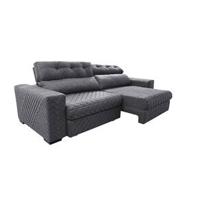 Sofá Retrátil E Reclinável 2,55m Molas Ensacadas Cama Inbox Style Thermo Gel Linho Cinza Escuro