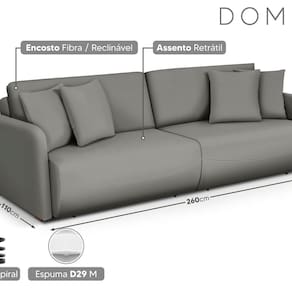 Sofá Domus: conforto sublime, tecido nobre e espuma envolvente. Estrutura em eucalipto e design elegante que transforma seu ambiente em um espaço de requinte, sofisticação e bem-estar para todos os momentos. Produto Montado: Não Acompanha Almofadas extras: 04 Almofada do assento: Fixa Almofada do encosto: Removível Altura do assento até o chão: 41.0000 Altura do Braço: 60 cm Altura do Encosto: 50 cm Altura dos Pés: 2,5 cm Altura Máxima dos Pés: 2.5000 Ambiente Principal: Sala de Estar codigo_ean: 7900288319975 Consistência do Assento: Macio Cor: Marfim Cor do Produto: Marfim Densidade do Assento: D-29 Enchimento do Assento: Espuma Firmeza do Assento: Macio Itens Inclusos: 1 Sofá e 4 Almofadas Largura do Braço: 9 cm Linha ou Coleção: Domus Manual de Montagem e Instalação: https://product-hub-prd.madeiramadeira.com.br/850364638/documents/cdee9826-19be-4e56-98ae-28892e13ce53a96c7509408fb3d51760709800.pdf Marca: ESTOFADOS GRAFANI Material dos Pés: Madeira Necessita Montagem: Não Peso: 114.0000 Pet Friendly: Não Possui Percintas Elásticas: Sim Possui Pés: 08 Possui Rodízio: Sim Recomendações de Uso, Manutenção e Limpeza: não Rodízio com Trava: Não Suporta Até (kg): 120 kg Tecido Predominante: Linho Tipo de Encosto: Regulável Tipo de Mola: Molas Espirais Tipo de Sofá: Sofá Comum Marca: Não Informado