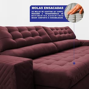 Sofá Retrátil E Reclinável 2,70m Molas Ensacadas Max Spring. Velusoft Cama Inbox Vinho