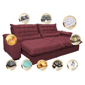 Sofá Retrátil e Reclinável 2,72m com Molas Ensacadas Cama inBox Aconchego Tecido Suede Vinho