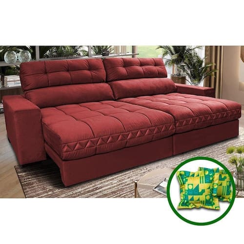 Sofá Retrátil E Reclinável 2,72m Molas Ensacadas Cama Inbox Brasil Velusoft Vermelho