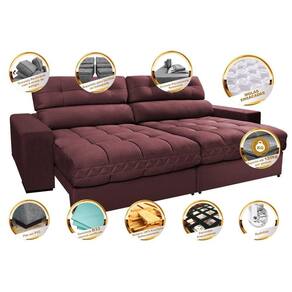 Sofá Retrátil e Reclinável 2,72m Molas Ensacadas Cama inBox Brasil. Velusoft - Vinho