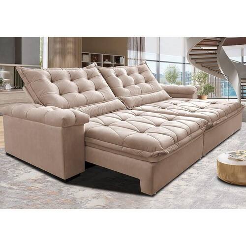 Sofá Retrátil E Reclinável 2,75m Cama Inbox Big Fresh Com Softgel D40 Velupluma Bege