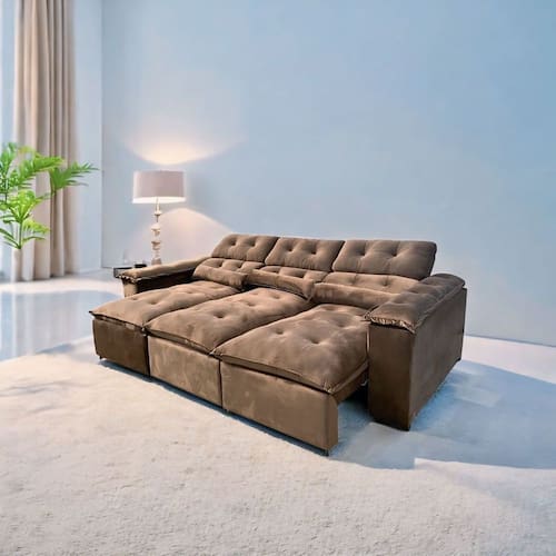O nosso Sofá Retrátil e Reclinável 2,75m C/ 05 Lugares em Tecido Veludo é o conforto e o espaço que você procura em um só produto! Ele possui assento MASTER que proporciona um conforto MASTER ao sentar ou deitar, nele cabe você e toda sua família!