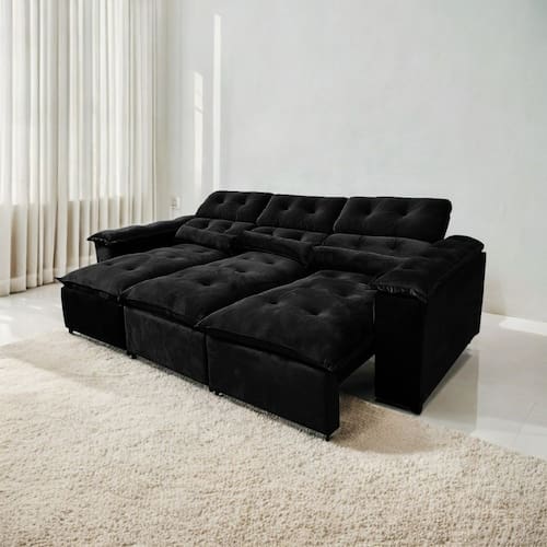 O nosso Sofá Retrátil e Reclinável 2,75m C/ 05 Lugares em Tecido Veludo é o conforto e o espaço que você procura em um só produto! Ele possui assento MASTER que proporciona um conforto MASTER ao sentar ou deitar, nele cabe você e toda sua família!