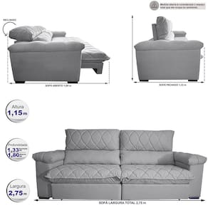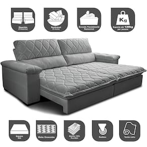 Com um design único e elegante, a linha BIG foi desenvolvida pra oferecer ainda mais conforto e prazer para relaxar a cada momento. O Sofá Retrátil e Reclinável Big Home tem uma exclusividade, seus encostos foram feitos com maior tamanho, dando total relaxamento ao sentar. Além disso, sua estrutura têm a estabilidade necessária para esse tipo de estofado, contendo em sua composição o enchimento em Espuma D33 mais ThermoGel, oferecendo uma sensação refrecante e aconchegante, além disso ele conta com Molejo Duplo de Molas Ensacadas mais Molas Bonnel e Percintas Extra Suport, tudo isso para dar o suporte necessário para o conforto. Garanta já o seu modelo e dê um UP no visual da sua sala!