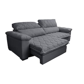 Sofá Retrátil E Reclinável 2,75m Molas Ensacadas Cama Inbox Big Home Bordado 3d Linho Cinza Escuro