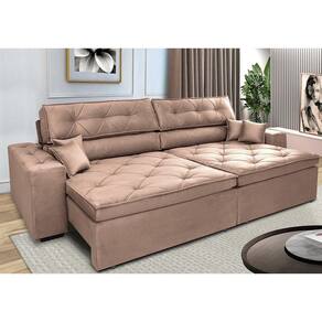 Sofá Retrátil e Reclinável 2,92m Cama inBox Estilo. Suede - Palha