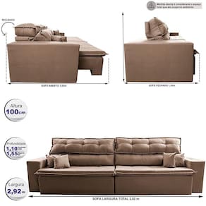 - A Cama inBox fica responsável pelo transporte e entrega do produto adquirido até a porta de entrada ou portaria do cliente. Após a conclusão da entrega no endereço solicitado, o transporte até o local de uso ficará sob responsabilidade do cliente, caso neste momento haja problemas ou danos no produto, ficará a cargo do mesmo. OBS.: As transportadoras NÃO SOBEM escadas ou elevadores. Tipo do Sofa: Retrátil e Reclinável | É sofá de canto: Não | É sofá-cama: Não | Encosto Reclinavel: Sim | Assento Retratil: Sim | Cor: Castor | Tonalidade: Castor | Cor Pincipal: Castor | Cor Via: Marrom | Desenho do tecido: Liso | Acessórios incluídos: Não possui | Fabricante: Cama inBox | Quantidade de Lugares: 5 | Peso do Produto: 80 | Altura: 100 | Largura: 292 | Profundidade: 110 | Material do estofado: Madeira Reflorestada, Espuma, Tecido | Estilo: Moderno | Complexidade de Montagem: Média: pode ser montada por mais de uma pessoa leiga | Tempo Estimado de Montagem: 30 | Produto: Sofá | Comodo indicado: Salas | Custo da Manutenção: Baixo | Conservação e Manutenção do Produto: Para maior durabilidade, recomendamos que a limpeza dos estofados com revestimento em tecido, seja feito com aspirador de pó em baixa rotação ou escova com cerdas macias para a eliminação de poeira e pano úmido em água. Não utilizar agentes químicos! | Condição do item: Novo | É kit: Não | Complexidade de Montagem Via: Fácil de Montar | Quantidade de Lugares Via: 5 lugares | Material para Filtro: Espuma | Estado de Origem: PR | Nome do Simples no Fornecedor: Cama inBox | Altura do Produto com Embalagem: 100 | Peso Produto Com Embalagem: 85 | Largura Produto Com Embalagem: 292 | Comprimento Produto Com Embalagem: 110 | Descrição do Tamanho: 292x110x100 | Montagem Necessária: Não | Conteúdo do produto: 1 sofá | Instruções do produto: Para maior durabilidade, recomendamos que a limpeza dos estofados com revestimento em tecido, seja feito com aspirador de pó em baixa rotação ou escova com cerdas macias para a eliminação de poeira e pano úmido em água. Não utilizar agentes químicos!