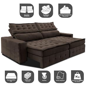 Apresentamos o incrível Sofá Retrátil e Reclinável Big Puffer, da exclusiva linha BIG! Com encostos mega gigantes e assentos espaçosos, este sofá foi projetado para proporcionar charme, elegância e um conforto incomparável à sua sala de estar. Sua estrutura interna resistente garante a estabilidade necessária para um móvel de alta qualidade, enquanto o enchimento em espuma SoftGel D40, Dupla Camada de Manta Siliconada e Percintas Extra Suport oferecem o suporte necessário para o máximo conforto. Com o Sofá Retrátil e Reclinável Big Puffer, você pode desfrutar para maratonar séries ou relaxar nos finais de semana com as pessoas que ama. Imagine-se em um colchão luxuoso, diretamente na sua própria sala de estar! Não deixe de adquirir esse modelo exclusivo e elevar o nível de conforto e sofisticação da sua casa. Venha conferir o Sofá Retrátil e Reclinável Big Puffer e descubra o verdadeiro significado de relaxamento!