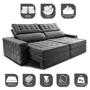 Sofá Retrátil e Reclinável 2,95m Cama inBox Big Star. com SoftGel D40 Velupluma - Cinza