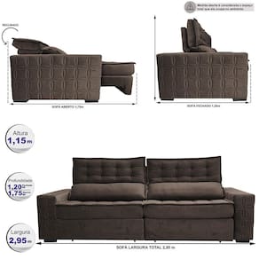 Sofá Retrátil e Reclinável 2,95m Cama inBox Big Star. com SoftGel D40 Velupluma - Marrom