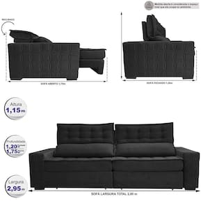Sofá Retrátil e Reclinável 2,95m Cama inBox Big Star. com SoftGel D40 Velupluma - Preto