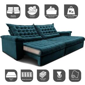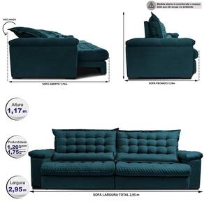 Sofá Retrátil E Reclinável 2,95m Molas Ensacadas Cama Inbox Big Space Com Bordado 3d Velusoft Petróleo