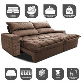 Sofá Retrátil e Reclinável 2,95m Molas Ensacadas Cama inBox Elegance. com ThermoGel Velusoft - Palha