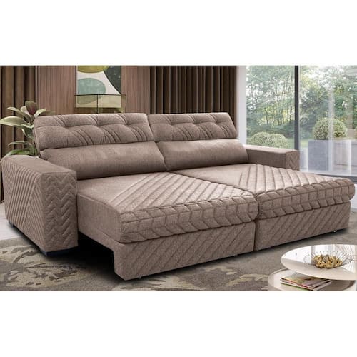 Sofá Retrátil E Reclinável 2,95m Molas Ensacadas Cama Inbox Style Thermo Gel Linho Bege Escuro