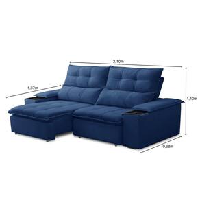 O Sofá Bulgária, é perfeito para promover aconchego e bem-estar, um modelo estruturado com madeira de eucalipto, revestido em veludo, com pés em madeira, rodízios de silicone e encosto reclinável por meio de catraca de 5 estágios, composto por fibra siliconada. Um móvel que abraça com a maciez do veludo que só o Sofá Bulgária pode oferecer. Graças ao seu design, ele é perfeito para trazer o charme que falta ao seu lar, possui braços retráteis com porta objetos, composto por espuma D-20, excelente para acomodar seus familiares e amigos. E para melhorar conte com seu assento retrátil em tubo composto por espuma D-26, um modelo que faz toda a diferença e proporciona todo conforto merecido. Acompanha Almofadas extras: Não Almofada do assento: Fixa Almofada do encosto: Fixa Altura do assento até o chão: 50 Altura do Encosto: 65 Altura dos Pés: 3 Ambiente Principal: Sala de Estar Complexidade da Montagem: Baixa: pode ser montado por uma pessoa sozinha Cor: Azul Cor do Produto: Azul Densidade do Assento: D-26 Densidade do Encosto: Camadas de Densidades Diferentes Enchimento do Assento: Espuma Enchimento do Encosto: Fibra Siliconada Estilo de Braço: Braços Quadrados Firmeza do Assento: Médio Informações Complementares: Estrutura: Madeira de lei (Eucalipto) devidamente tratada e aparelhada com reforços e cantoneiras e chapas em MDF.ENCOSTO: Reclinável por meio de catraca metálica de 5 estágios, composto por 100% de fibra siliconada.ASSENTO: Retrátil em tubo, composto por Itens Inclusos: 1 Sofá e Manual de Instruções Linha ou Coleção: Retrátil e Reclinável, com porta copos e objetos Manual de Montagem e Instalação: https://product-hub-prd.madeiramadeira.com.br/871844/documents/5463b283-c73a-47d6-a9df-e8e99c147ae49esquemademontagemferguile.pdf Material dos Pés: Madeira Montagem Flex: Não possui Necessita Montagem: Sim Origem do Produto: Nacional Peso: 60 Pet Friendly: Não Possui Percintas Elásticas: Sim Possui Pés: 05 Possui Rodízio: Sim Profundidade Quando Estendido: 137 Recomendações de Uso, Manutenção e Limpeza: Para remoção de poeira, utilizar aspirador de pó em velocidade baixa ou escova com filamentos ultra macios. Para a remoção de líquidos e sujeira derramados de forma acidental, retirar delicadamente sem comprimir o tecido, utilizando pano limpo ou papel absorvente. Não é recomendado utilizar produtos de limpeza domésticos. Para evitar a alteração na cor do revestimento, o estofado não deverá ser exposto ao sol ou a alta luminosidade. Evite o contato do estofado com objetos cortantes, perfurantes e pontiagudos. Para movimentar o estofado de forma correta, levante-o segurando por baixo. Resistente à Chuva: Não Revestimento do Braço: Veludo Rodízio com Trava: Não Sistema de Montagem: Rosqueamento dos pés e encaixe dos encostos Suporta Até (kg): 100 Tecido Predominante: Veludo Tipo de Encosto: Regulável Tipo de Mola: Molas Ensacadas (Molas ensacadas) Ean: 7909903440933