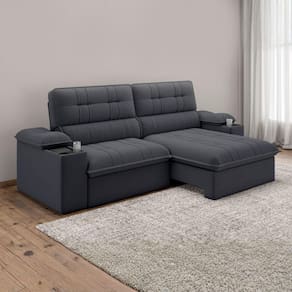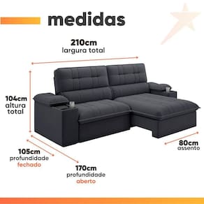 Importante sobre a entrega: A entrega é realizada até a portaria ou porta de entrada do endereço indicado, desde que o acesso seja permitido. Para locais com portaria, a entrega será feita no piso térreo. Não realizamos montagem, desmontagem, transporte por escadas ou içamento. É responsabilidade do cliente verificar se as dimensões do produto são compatíveis com portas, elevadores e corredores. Evite imprevistos: confira todos os detalhes antes de concluir sua compra. MEDIDAS:: A = 104 cm L = 210 cm P = 170 cm (Aberto) / 105 cm (Fechado) | MEDIDAS PÉS:: A = 2,5 cm L = 17 cm P = 2,5 cm | PESO SUPORTADO POR ASSENTO:: 120 kg | PESO:: 82 kg | MODELO:: Sofá Retrátil e Reclinável 3 Lugares 2,10m c/ Porta Copos Slim Stanley | MARCA:: Luizzi | MATERIAL DA ESTRUTURA:: Madeira de reflorestamento oferecendo resistência, durabilidade e qualidade | TIPO DE SOFÁ:: Retrátil e reclinável | MOLAS:: Molas de qualidade, garantindo maior conforto e sustentação | MATERIAL DO ASSENTO:: Espuma de alta qualidade | DENSIDADE DA ESPUMA:: Camada de espuma D28, firme e confortável, dentro dos padrões ABNT | QUANTIDADES DE LUGARES:: 3 lugares espaçosos | MATERIAL DO ENCOSTO:: Fibra e flocos, reclinável 3 estágios, mais aconchegante | PERCINTAS:: Elásticas (Assento e Encosto), oferecendo mais resistência | TECIDO DO SOFÁ:: Slim, elegante e sofisticado | POSSUI ENCOSTO REMOVÍVEL:: Sim, facilitando a limpeza | MATERIAL DO BRAÇO:: Fibra e flocos, para apoio confortável | MATERIAL DOS PÉS:: PVC resistente | QUANTIDADES DE PÉS:: 5 | RODÍZIOS:: Sim, de silicone que facilitam a movimentação | DIFERENCIAL:: Estrutura em madeira Reflorestada / Encosto reclinável 3 estágios / Percintas elásticas no assento e encosto / Encosto removível com fibras e flocos / Porta copos ambos braços e Cooler de 5 litros no braço direito / Rodízios de silicone. | INSTRUÇÕES E CUIDADOS:: Utilizar pano úmido ou aspirador de pó. Não utilizar produtos abrasivos. | GARANTIA:: 3 Meses. | AVISO:: Importante sobre a entrega: A entrega é realizada até a portaria ou porta de entrada do endereço indicado, desde que o acesso seja permitido. Para locais com portaria, a entrega será feita no piso térreo. | Altura: 104 | É reclinável: Sim | Inclui manual de montagem: Sim | Largura: 210 | Profundidade: 105 | Quantidade de caixas de embalagem: 1 | Quantidade de lugares: 3 | Requer montagem: Sim | Tipo de produto: Sofá | Altura da embalagem: 109 | Comprimento da embalagem: 110 | Largura da embalagem: 215 | Peso da embalagem: 82000 g | Tipo da embalagem: sem embalagem adicional | Cor: Cinza