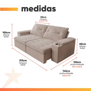 MODELO: Sofá Retrátil e Reclinável 3 Lugares 2,12m c/ Porta Copos e Entrada USB Veludo San Diego