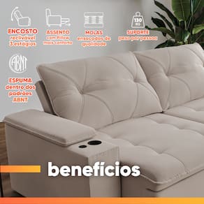 O Sofá San Diego é a combinação perfeita de conforto, praticidade e inovação, ideal para transformar seu dia a dia. Seus braços deslizantes possuem porta-copos e carregador USB, oferecendo uma experiência de relaxamento com tecnologia integrada para sua comodidade. O assento retrátil, com molas ensacadas, proporciona a firmeza e a maciez ideais, garantindo momentos de descanso e bem-estar. O encosto ajustável em 3 posições permite personalizar a sua experiência de conforto, enquanto as almofadas e os braços, feitos com espuma e fibra de silicone, garantem bastante conforto. Versátil e sofisticado, este sofá é perfeito para relaxar após um longo dia ou receber amigos com estilo. Moderno e funcional, o Sofá San Diego é a escolha certa para levar conforto, elegância e tecnologia à sua sala.
