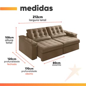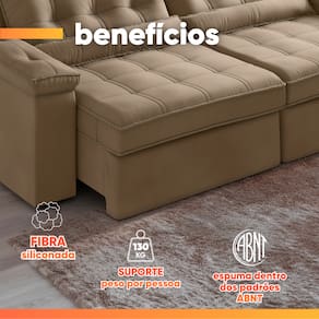 MODELO: Sofá Retrátil e Reclinável 3 Lugares 2,12m Veludo Ilhéus