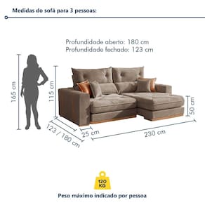 Sofá Retrátil e Reclinável 3 Lugares 230cm Columbia Bege