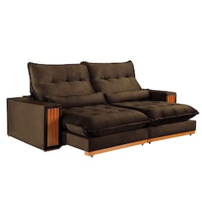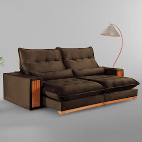 As almofadas vêm junto? Sim, vão duas. Acompanha Almofadas extras: Não Almofada do assento: Fixa Almofada do encosto: Fixa Altura do assento até o chão: 50 cm Altura do Encosto: 70 cm Altura dos Pés: 2,5 cm Ambiente Principal: Sala de Estar codigo_ean: 7900288144232 Cor: Marrom Cor do Produto: Marrom Densidade do Assento: D-26 Enchimento do Assento: Espuma Enchimento do Encosto: Fibra Siliconada Estilo de Braço: Braços Quadrados Firmeza do Assento: Macio Itens Inclusos: 01 sofá Largura do Braço: 25 cm Marca: Kasacomigo Estofados Material dos Pés: Eucalipto Necessita Montagem: Não Origem do Produto: Nacional Peso: 59 kg Pet Friendly: Não Possui Baú: Não Possui Mola: Sim Possui Percintas Elásticas: Sim Possui Pés: 08 Possui Rodízio: Sim Profundidade Quando Estendido: 180 cm Quantidade de Estágios do Encosto: 6 Quantidade de Molas por Assento: 2 Recomendações de Uso, Manutenção e Limpeza: Pano úmido Rodízio com Trava: não Suporta Até (kg): 120 kg Tecido Predominante: Veludo Tipo de Encosto: Regulável Tipo de Mola: Molas Ensacadas Tipo de Sofá: Sofá Comum Marca: Kasacomigo Estofados