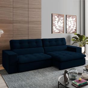 Sofa Retratil E Reclinavel 3 Lugares 246 cm Eldorado Veludo, é a escolha certa para você que busca conforto e bem-estar, tornando o ambiente em que estiver muito mais elegante e moderno. Estrutura em madeira de reflorestamento (pinus, eucaliptos e placas de OSB) e cintas elásticas de alta resistência. Composto por madeira imunizada contra mofo, cupim e microrganismos, revestimento em tecido veludo, encosto reclinável em almofada com fibras e flocos, revestida com kami e manta acrílica, assento retrátil com molas, almofada com fibras e flocos, revestida com kami e manta acrílica, e abertura de até 176 cm, braça em espuma D-20, adornos em espuma D-16, acabamento inferior em kami, pés em MDF tingidos e acompanham 4 rodízios em silicone. Suportando até 130 kg por assento. Possui design diferenciado, que oferece sofisticação, versatilidade e charme ao seu ambiente. Este móvel chegará na sua casa separado em 02 volumes.