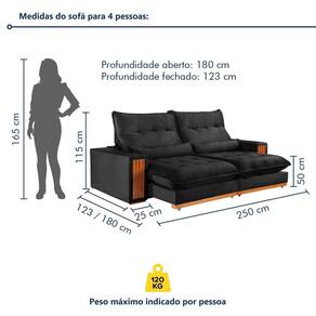 As almofadas vêm junto? Sim, vão duas. Acompanha Almofadas extras: Não Almofada do assento: Fixa Almofada do encosto: Fixa Altura do assento até o chão: 50 cm Altura do Encosto: 70 cm Altura dos Pés: 2,5 cm Ambiente Principal: Sala de Estar codigo_ean: 7900288143730 Cor: Preto Cor do Produto: Preto Densidade do Assento: D-26 Enchimento do Assento: Espuma Enchimento do Encosto: Fibra Siliconada Estilo de Braço: Braços Quadrados Firmeza do Assento: Macio Itens Inclusos: 1 Sofá Largura do Braço: 25 cm Marca: Kasacomigo Estofados Material dos Pés: Eucalipto Necessita Montagem: Não Origem do Produto: Nacional Peso: 77,4 kg Pet Friendly: Não Possui Baú: Não Possui Mola: Não Possui Percintas Elásticas: Sim Possui Pés: 08 Possui Rodízio: Sim Profundidade Quando Estendido: 180 cm Quantidade de Estágios do Encosto: 6 Quantidade de Molas por Assento: 2 Recomendações de Uso, Manutenção e Limpeza: Pano úmido Rodízio com Trava: não Suporta Até (kg): 300 kg Tecido Predominante: Veludo Tipo de Encosto: Regulável Tipo de Mola: Molas Ensacadas Tipo de Sofá: Sofá Comum Marca: Kasacomigo Estofados
