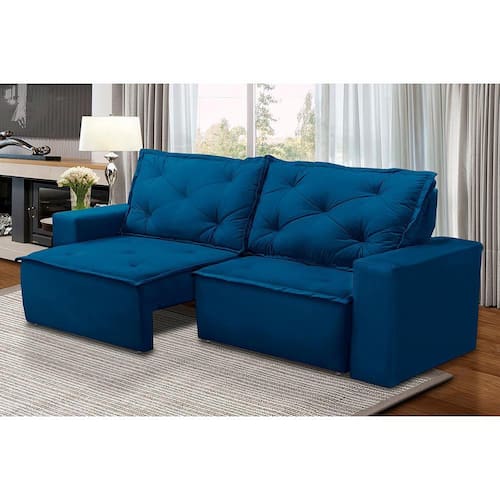 Sofá Retrátil e Reclinável 3 lugares com Molas 1,80m Alana Suede Azul Madelina - Azul Marinho
