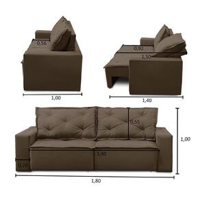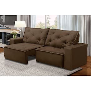Sofá Retrátil e Reclinável 3 lugares com Molas 1,80m Alana Suede Marrom Madelina