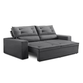 Sofá Retrátil e Reclinável 3 lugares com Molas 1,80m Laisa Suede Cinza Madelina Decor